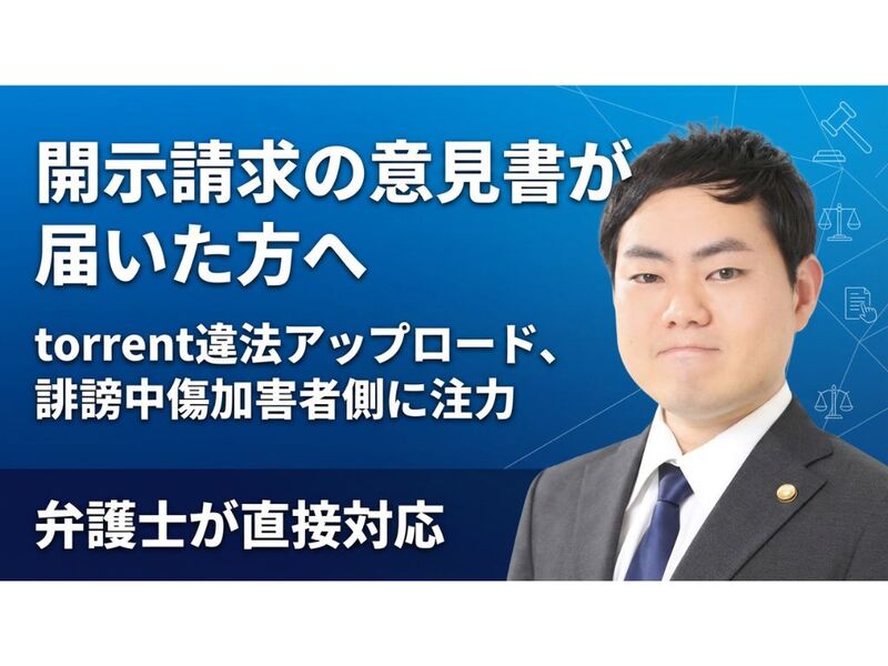 意見照会書が届いた方や発信者情報開示請求を受けた方に対し、家族や職場に知られることなく解決へ導く示談交渉を得意としており、トレント問題に関する豊富な解決実績があります。